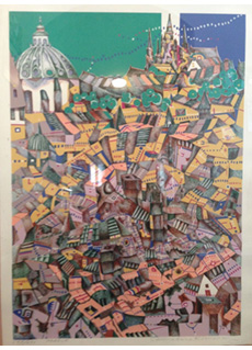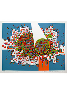 • Buenos Aires by Risaburo Kimura (Japan, 1924). Contemporary Japanese abstract silkscreen print depicting an interpretation of the city of Buenos Aires. From the series "Great Cities of the World". Published on BFK Rives paper by Shorewood Atelier. Signed, titled and numbered in pencil by the artist. Limited edition numbered 31 of 250. Paper watermark bottom right.