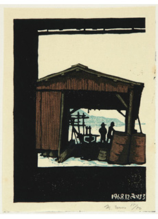• Landscape with Flowers A.P by Mitsuhiro Unno. Beautiful image of a person working in the fields with a house in the background. Signed in pencil lower right by the artist, with his chop mark next to the signature. This is an artists proof version of the print.