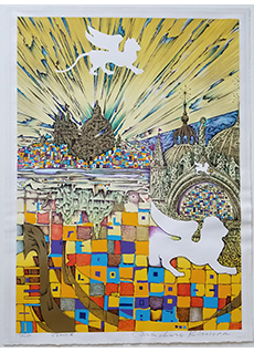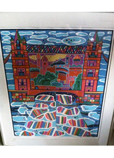 • Madrid by Risaburo Kimura.  Original Japanese silkscreen print from the Great Cities of the World series. Pencil A.P. titled, and signed by artist, in bottom marign. Fine color, condition and impression. Print measures 30.3 x 22.1 inches. Print has not been framed and retains original colors.