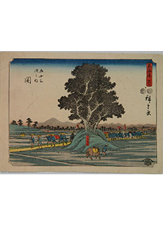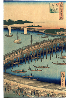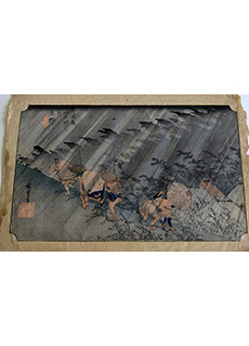 • Moonlit Boats on River by Ando Hiroshige. Original Japanese woodblock print dated to the early 19th century. Features boats on a river under the full moon. Marked with the artist signature on the woodblock print. Found safely stored away for years at a 90 year old estate.