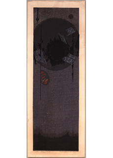 • Sail by Hodaka Yoshida (Japan, 1926-1995). Beautiful Sosaku Hanga Japanese woodblock print depicting an abstract interpretation of wind caught sails. One of Hodaka Yoshida's earliest documented prints. Based on publications, this is Hodaka's 2nd commercially published design. Self-published in 1951. This design was part of Hodaka's earliest period which typically was characterized by semi-abstract visual essays with little or no spatial depth or perspective.