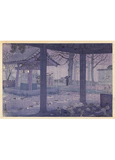 • Three-Headed Deity In Ashura Temple by Shiro Kasamatsu. Japanese woodblock print depicting the Three-Headed Deity statuse located inside the temple. Print dates to 1959. Hand signed and stamped by the artist.