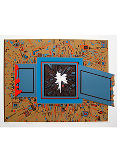 • Tokyo by Risaburo Kimura (Japan, 1924). Contemporary Japanese silkscreen print depicting an abstract interpretation of the city of Tokyo. From the series "Great Cities of the World". Published on BFK Rives paper by Shorewood Atelier. Signed, titled and numbered in pencil by the artist. Limited edition numbered 64 of 250. Paper seal bottom right.