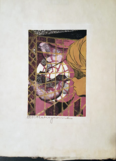 • Untitled Abstract 1959 by Tadashi Nakayama (Japan, 1927-2014). An early abstract work by the artist with tremendous use of color and shape. The work has a very primitive / molecular approach to it which makes it more engaging the more that you contemplate it. A limited edition work numbered 11 of 20. Printed by the artist in the Sosaku Hanga style in 1959.