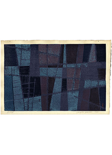 • Windows by Chizuko Yoshida (Japan, 1924-2017). A beautiful Sosaku Hanga Japanese woodblock print depicting an abtract view out of a window. This is one of those works where you gain new personal insights into the design everytime you look at the print. Dated 1954. Signed in pencil by the artist. Originally from the Yoshida Family Collection.
