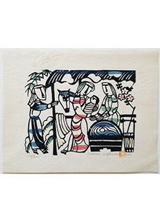 • Woman of Canaan by Sadao Watanabe (Japanese, 1913-1996). Color stencil dye-print on hand-made paper. Hand signed, dated and titled in white, numbered 165/210. Dated 1964.