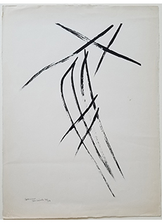 • Crystalline by Toko Shinoda (Japan, 1913). Beautiful abstract lithograph print by one of Japan's preeminent artists. A fine, firm composition with geometric emphasis, with delicately rendered detail in red and white wash on the horizontal stroke. Signed, titled and numbered in pencil by the artist. Limited edition numbered 24 of 30.