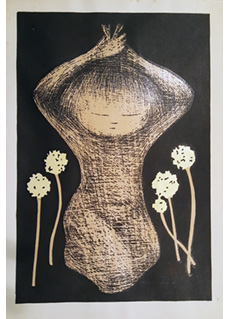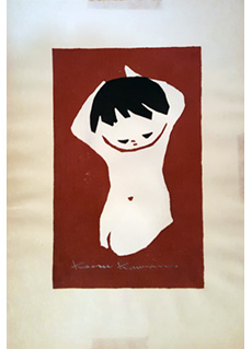 • Child with Bluebird by Kaoru Kawano. Beautiful original woodblock print by well known contemporary Japanese artist Kaoru Kawano (1916 - 1965). Bears the red seal mark lower right on face and black seal mark lower right on reverse. Pencil notations on bottom margin reverse. Excellent impression and bleed through.
