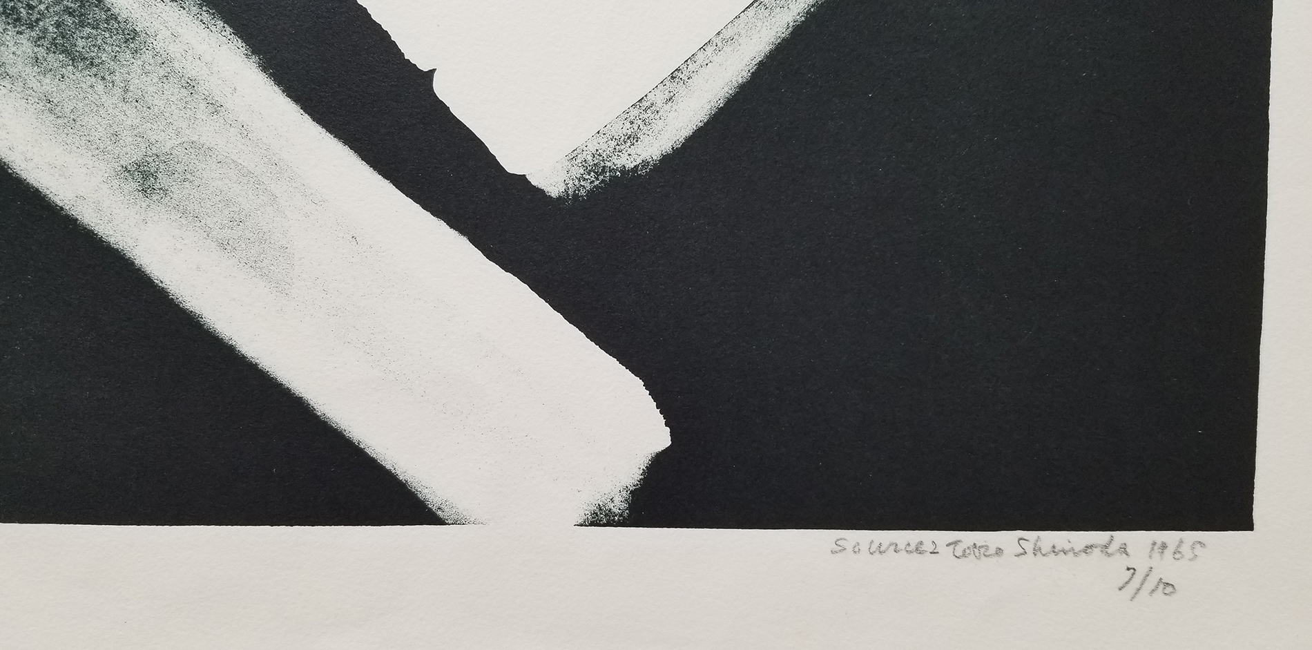 • Source 2 by Toko Shinoda (Japan, 1913). Limited edition color lithograph numbered 7 of 10. An early lithograph done as part of the "Source" series. Published in 1965. Signed, titled, dated and numbered in pencil by the artist. Paper seal bottom left reading "JAA".