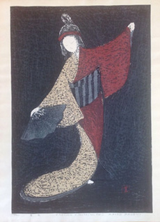 • Three Eyes by Kaoru Kawano. Vintage mid century Japanese woodblock. Dates to approximately 1960s.