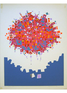 • Buenos Aires by Risaburo Kimura (Japan, 1924). Contemporary Japanese abstract silkscreen print depicting an interpretation of the city of Buenos Aires. From the series "Great Cities of the World". Published on BFK Rives paper by Shorewood Atelier. Signed, titled and numbered in pencil by the artist. Limited edition numbered 31 of 250. Paper watermark bottom right.